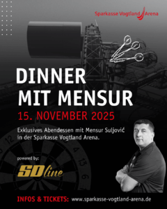 Am 15. November 2025 erwartet dich ein unvergessliches Erlebnis. Ein exklusives Abendessen mit  Mensur Suljović. Du willst nicht selbst mitspielen, aber ein Meet and Greet mit dem Dart-Profi genießen? Dann ist dieses Angebot genau richtig für dich!